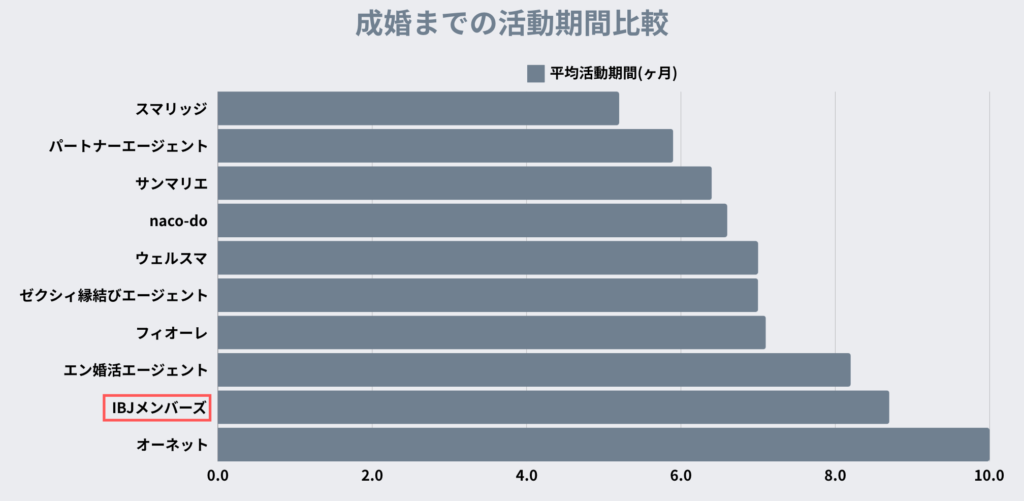 成婚までの活動期間の比較は、公式ページや比較ページなどの情報を元に作成しています。