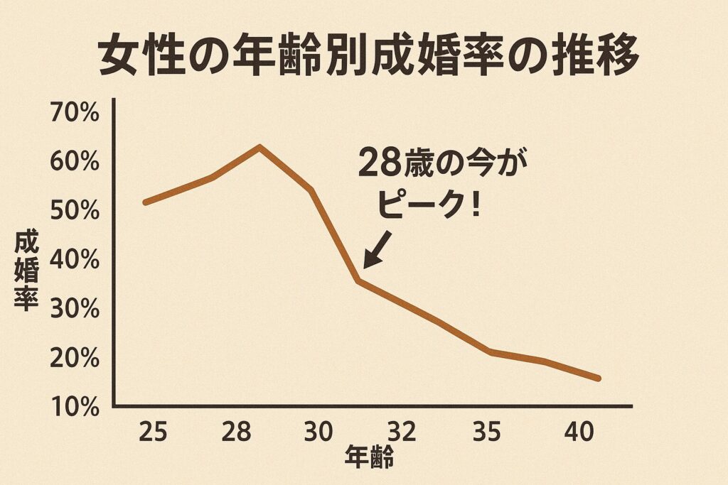 厳しいことを言うようですが、婚活市場において年齢は最大の資産です。 28歳の今なら、30代前半のハイスペックなイケメンから多くの申し込みが期待できます。