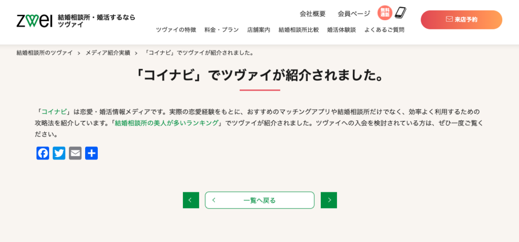 結婚相談所ツヴァイ様にて、コイナビを紹介いただきました。