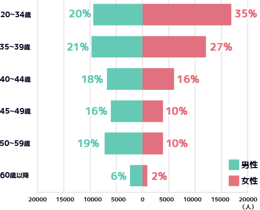 ツヴァイの女性会員の年齢層は20~34歳が最も多い比率になっており、若い女性と出会いやすい環境です。