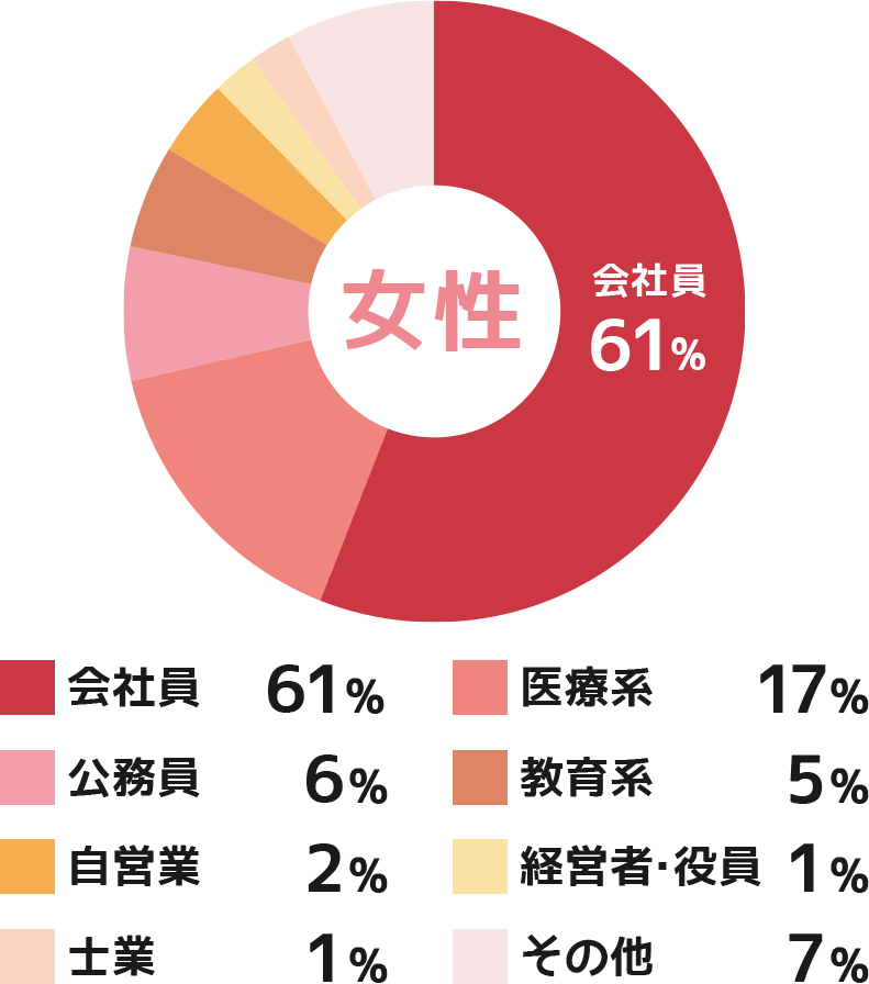 ツヴァイにはメディカルワーカー割があるため、医療系の女性が多くなっています。