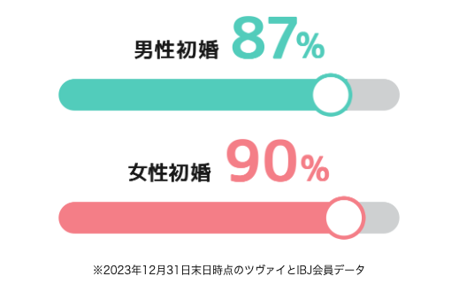 ツヴァイの女性会員の婚姻歴は初婚が9割となっています。